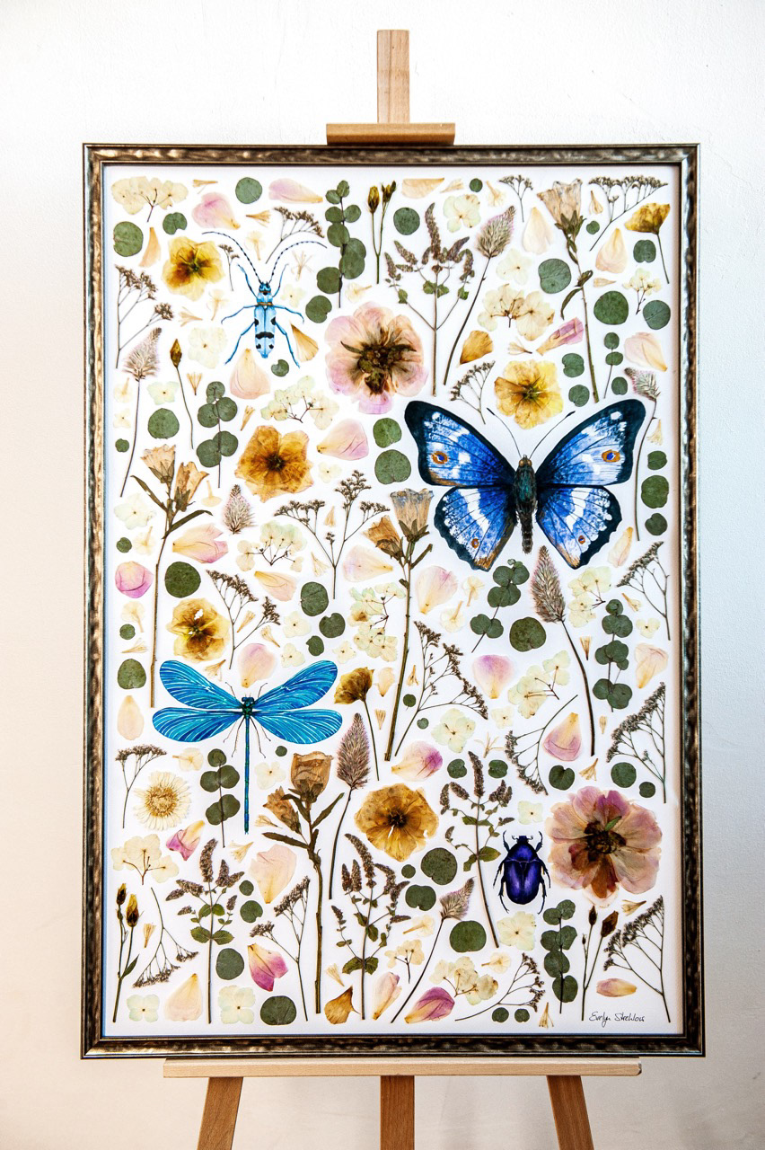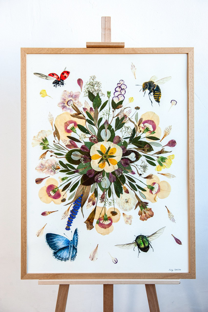 Die Blumen des Brautstraußes werden dabei von mir gepresst, konserviert und gemeinsam mit meinen Aquarell-Illustrationen als Collage zu einzigartigen Kunstwerken verarbeitet. Dies geschieht in enger Absprache mit dem Brautpaar nach seinen individuellen Wünschen.