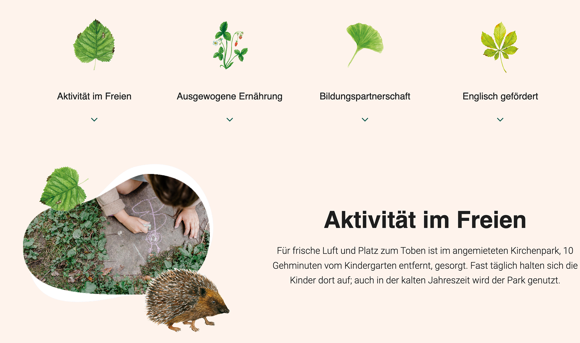Für den Cottage Privatkindergarten in Wien durfte ich die Gruppen-Tiere Eule, Igel und Fuchs illustrieren, sowie mehrere Blätter, Wald-Pflanzen und Pilze. Die Illustrationen dienen einerseits als Bastel- und Lehr-Material, andererseits werden sie auf der Webseite und im Kindergartengebäude eingesetzt.
