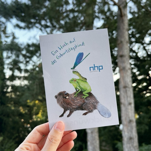 Für die Anwaltskanzlei "NHP Anwälte" durfte ich eine handgemalte Glückwunschkarte mit vier bekannten Tieren aus der Lobau bzw. den Donauauen illustrieren, inklusive Schriftzug. Eine Zusammenarbeit mit Makro Design.